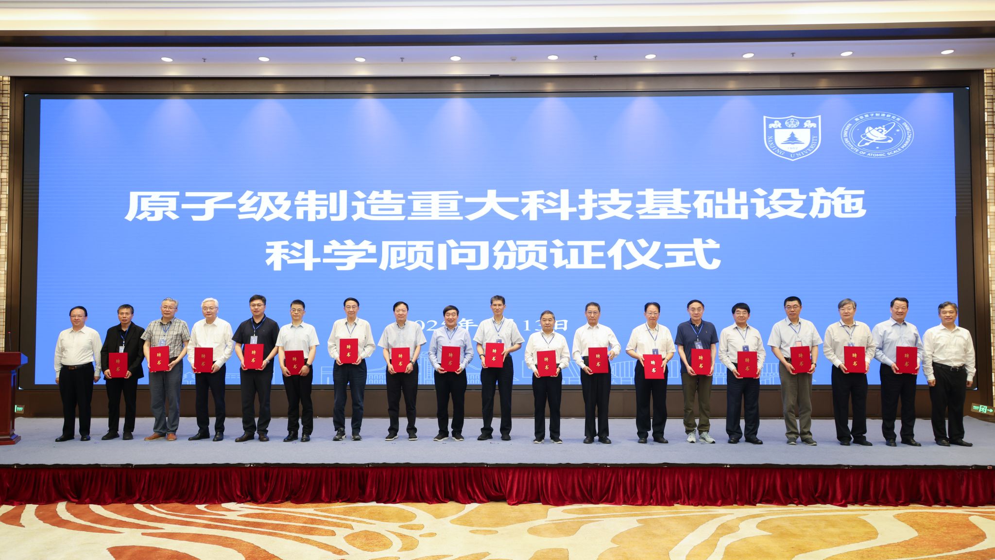 Tan Tieniu and Yang Xinzhong awarded certificates to scientific advisors for the major science and technology infrastructure in atomic-level manufacturing.