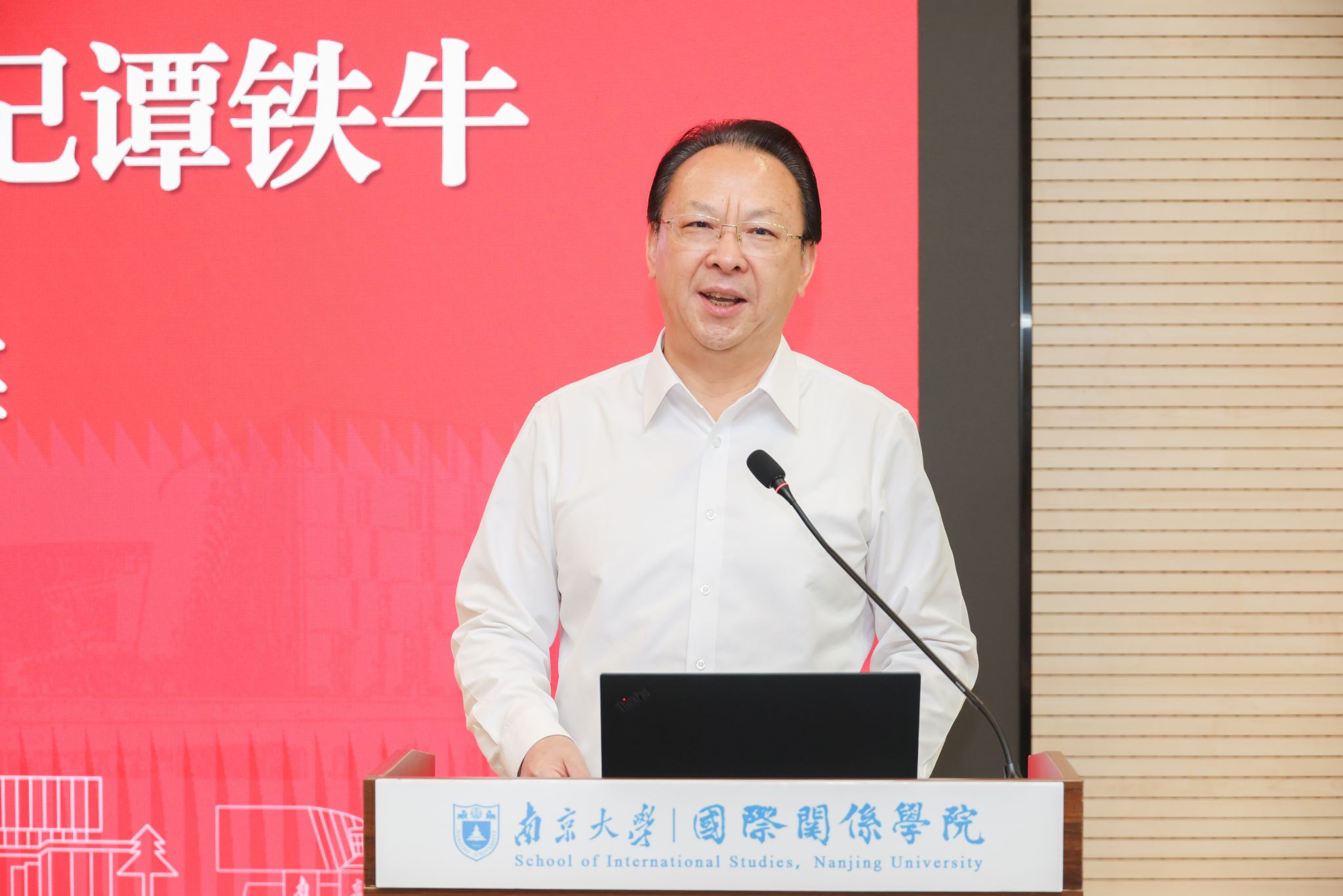 Tan Tieniu welcomed the guests on behalf of Nanjing University and expressed heartfelt gratitude for their support for the School of International Studies. He emphasized that NJU places great importance on philosophy and social sciences, as well as the development of international relations and area studies. Since its establishment, the School has achieved remarkable results in serving national strategic needs, enhancing moral and educational outcomes, accelerating team building, and promoting high-quality discipline development. Faculty and students have worked together to write a vibrant chapter in the university's comprehensive "Forging Ahead Initiative" and the acceleration of "Double First-Class" construction. The School of International Relations is tasked with strengthening research in international relations, area studies, and international organizations, promoting the construction of NJU's distinctive area studies disciplines, cultivating high-level diplomatic talents with both national sentiment and international vision, and addressing China's prominent issues in international exchanges. It is an indispensable part of the grand blueprint for building the "unique Nanjing University." He hoped that the School of International Studies would strive to become an academic stronghold serving the Party and national work, a model for building an independent knowledge system in Chinese philosophy and social sciences, and write a new chapter in accelerating the construction of a world-class Nanjing University with Chinese characteristics.