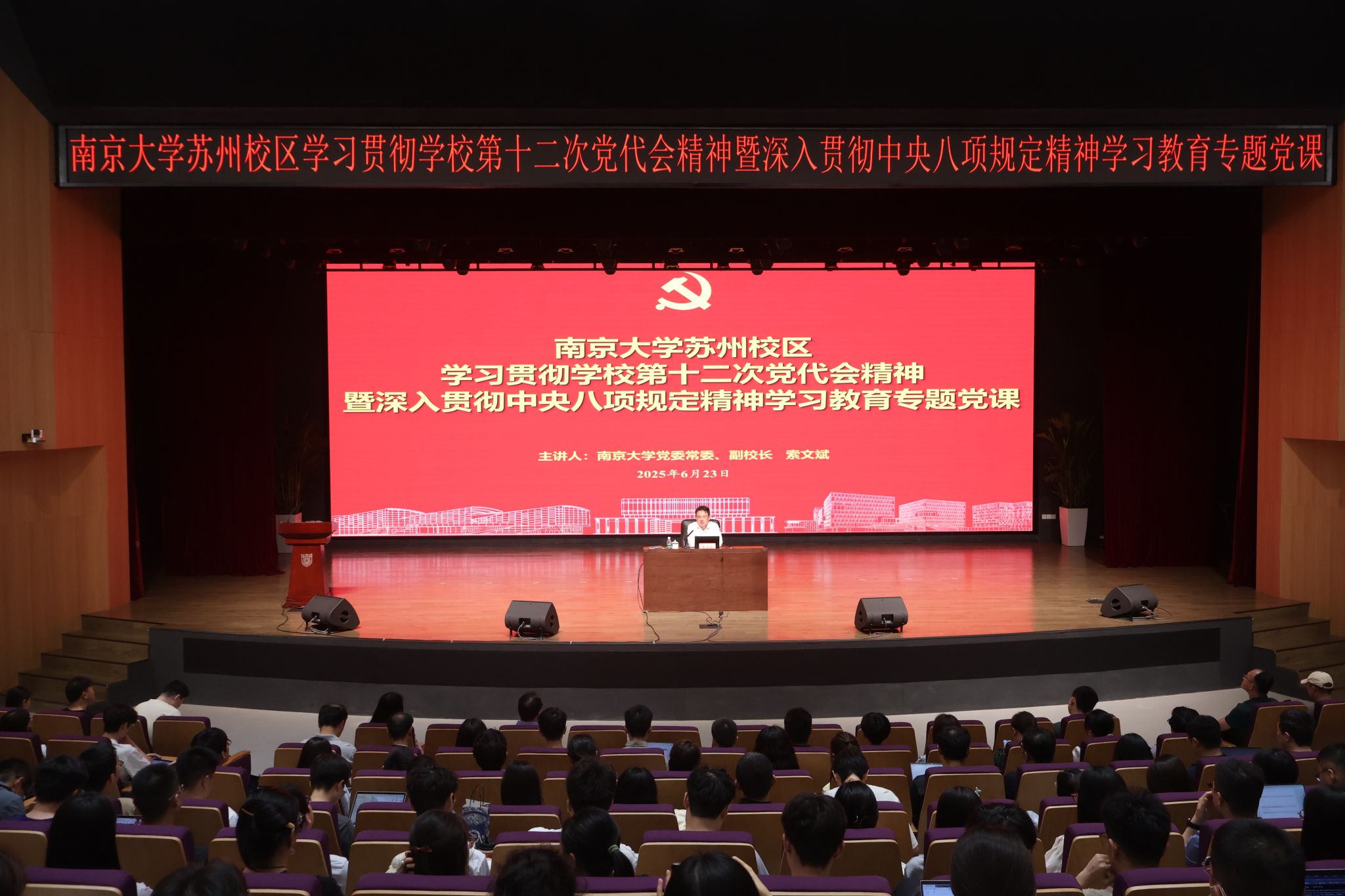 6月23日中午,凯发k8官网苏州校区在南雍楼多功能厅举办学习贯彻学校第十二次党代会精神专题学习会,凯发k8官网党委常委、副校长,苏州校区党工委书记、管委会主任索文斌传达会议精神。