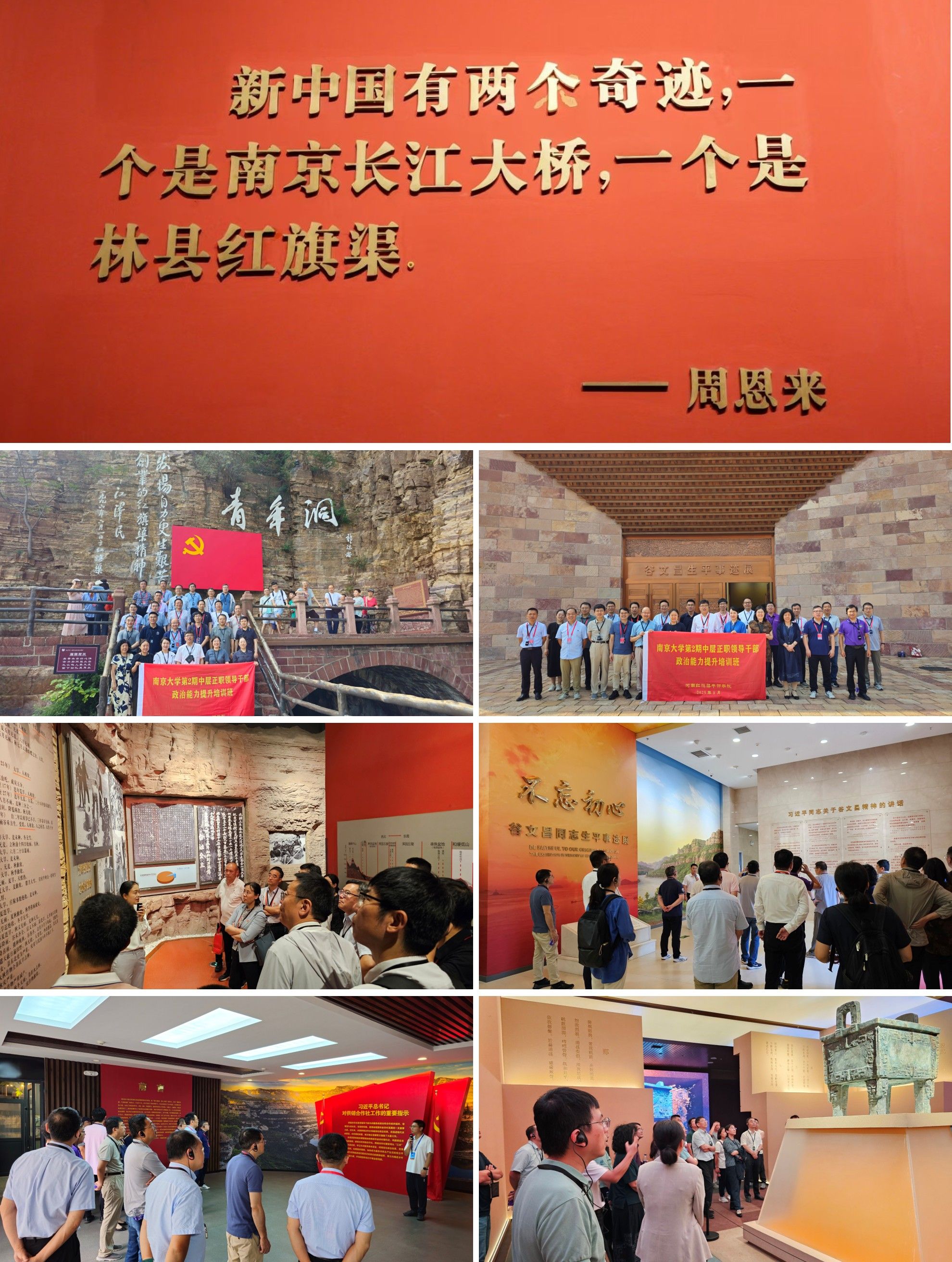 8月11日至15日,我校第二期中层正职领导干部政治能力提升培训班在河南红旗渠干部学院开班,二十余位中层正职领导干部参加培训。培训通过专题讲座、实践教学、访谈观摩、分组研讨等形式开展,旨在深入学习贯彻习近平新时代中国特色社会主义思想,持续巩固深入贯彻中央八项规定精神学习教育成果,学习、传承和弘扬以“自力更生、艰苦创业、团结协作、无私奉献”为内涵的红旗渠精神,进一步推动学校中层正职领导干部强化政治训练,提高党性修养,传承优良作风,不断提高政治觉悟和政治能力。