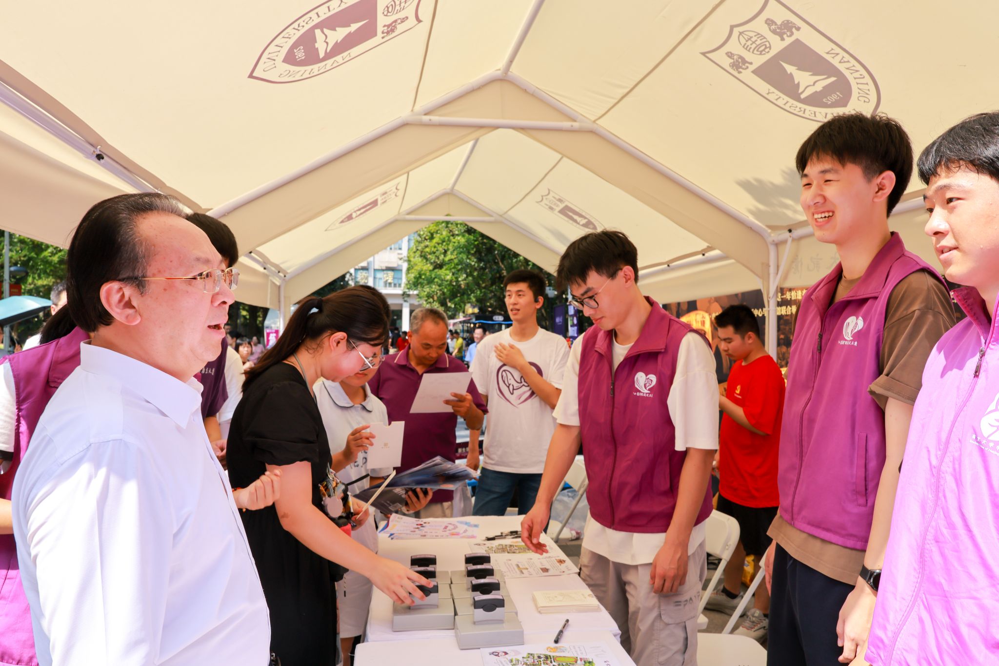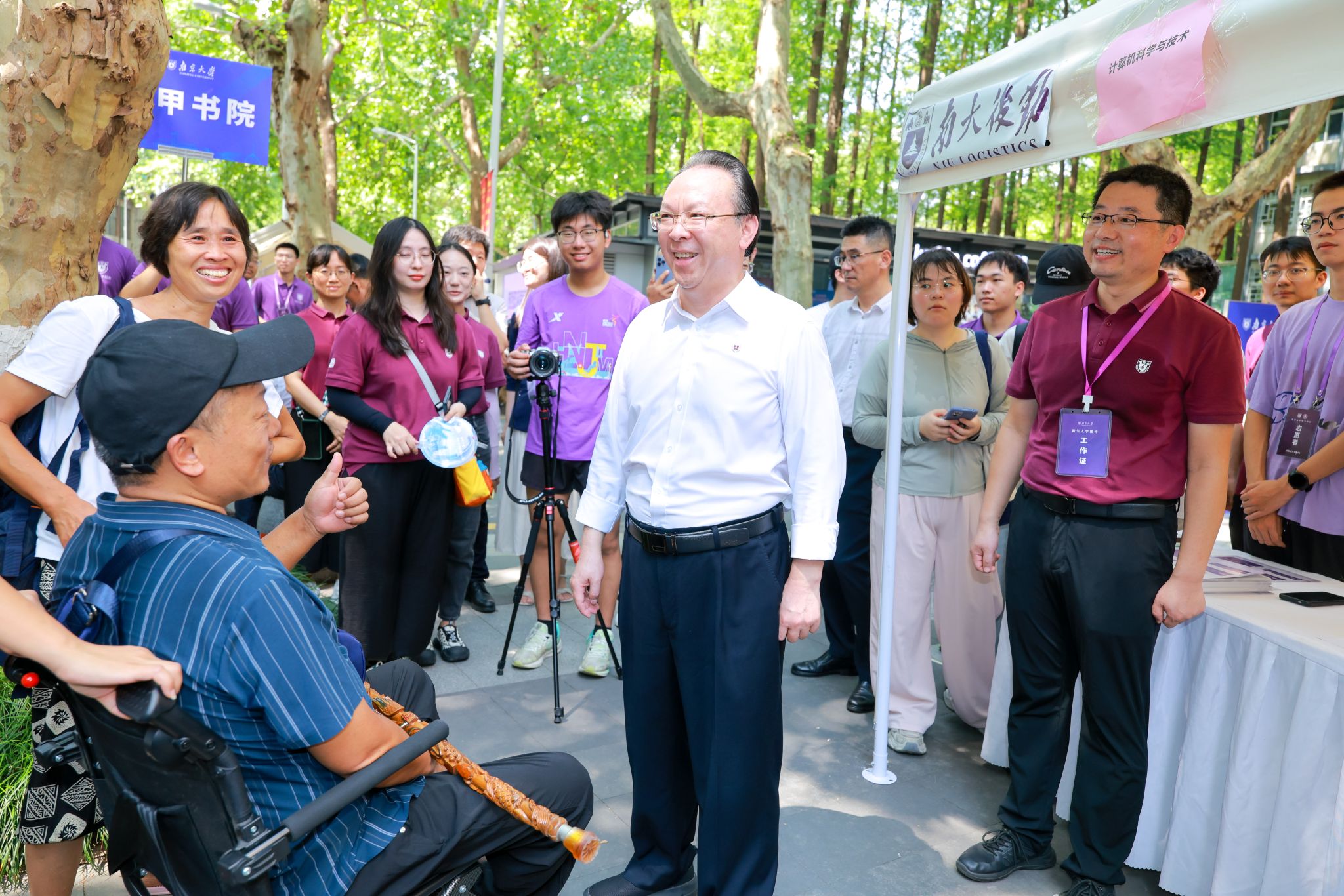 8月30日,凯发k8官网党委书记、中国科学院院士谭铁牛来到鼓楼校区迎新现场,看望初入校园的2025级本科新生,走访慰问忙碌于迎新一线的师生员工与志愿者。