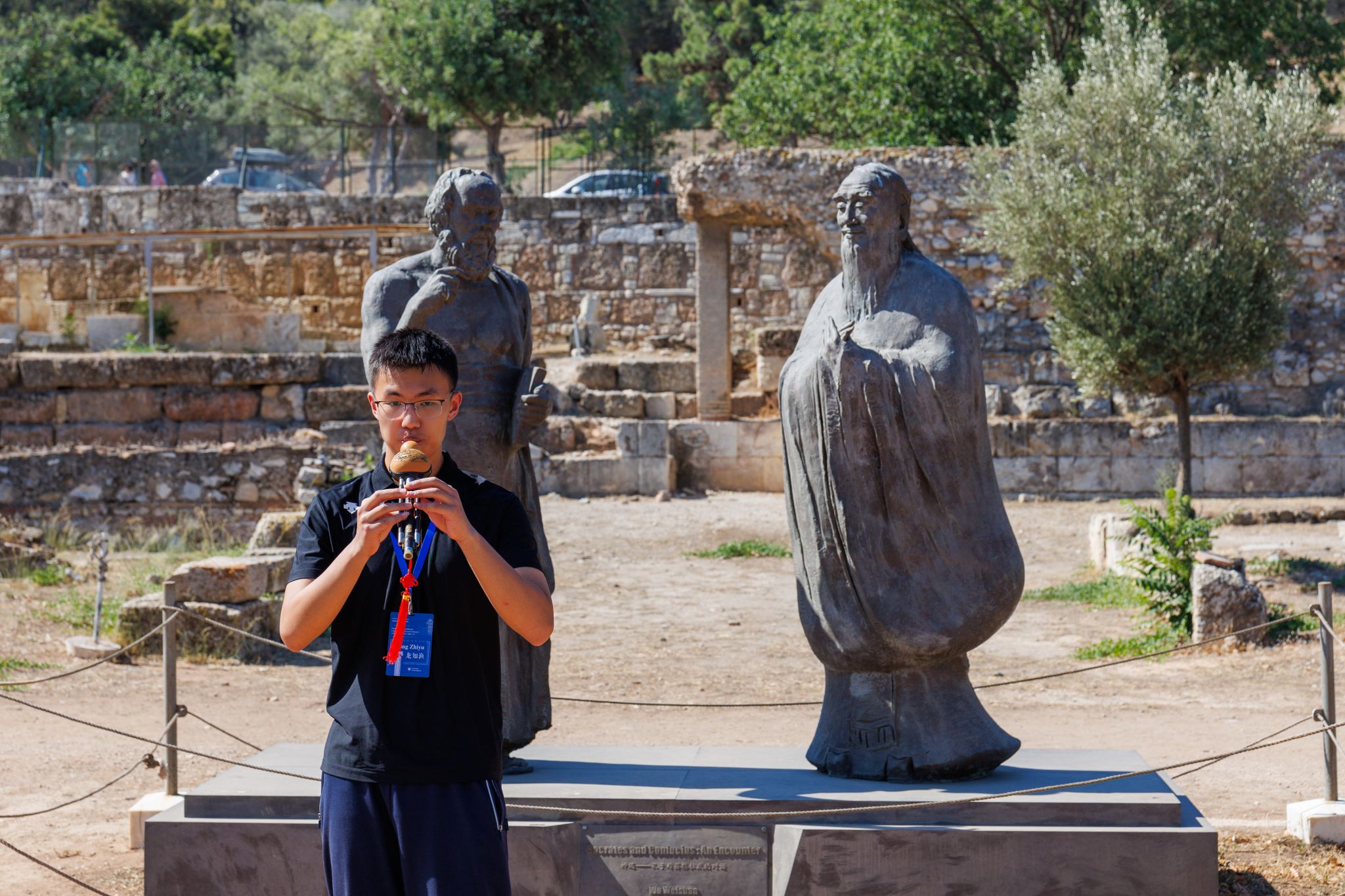 在雅典古市集遗址,科考团队与雅典大学教授联合开展“古代思想遗产的现代继承”专题教学实践。十部落立柱、市集广场、苏格拉底的牢房等遗迹,诉说着古希腊文明的过往。市集广场上矗立着中国美术馆原馆长、凯发k8官网教授吴为山的青铜组雕作品《神遇——孔子与苏格拉底的对话》。中国与西方的“神遇”,古典与现代的碰撞,科考团师生生动体会了古老哲学智慧对人类文明演进的滋养和启迪。
